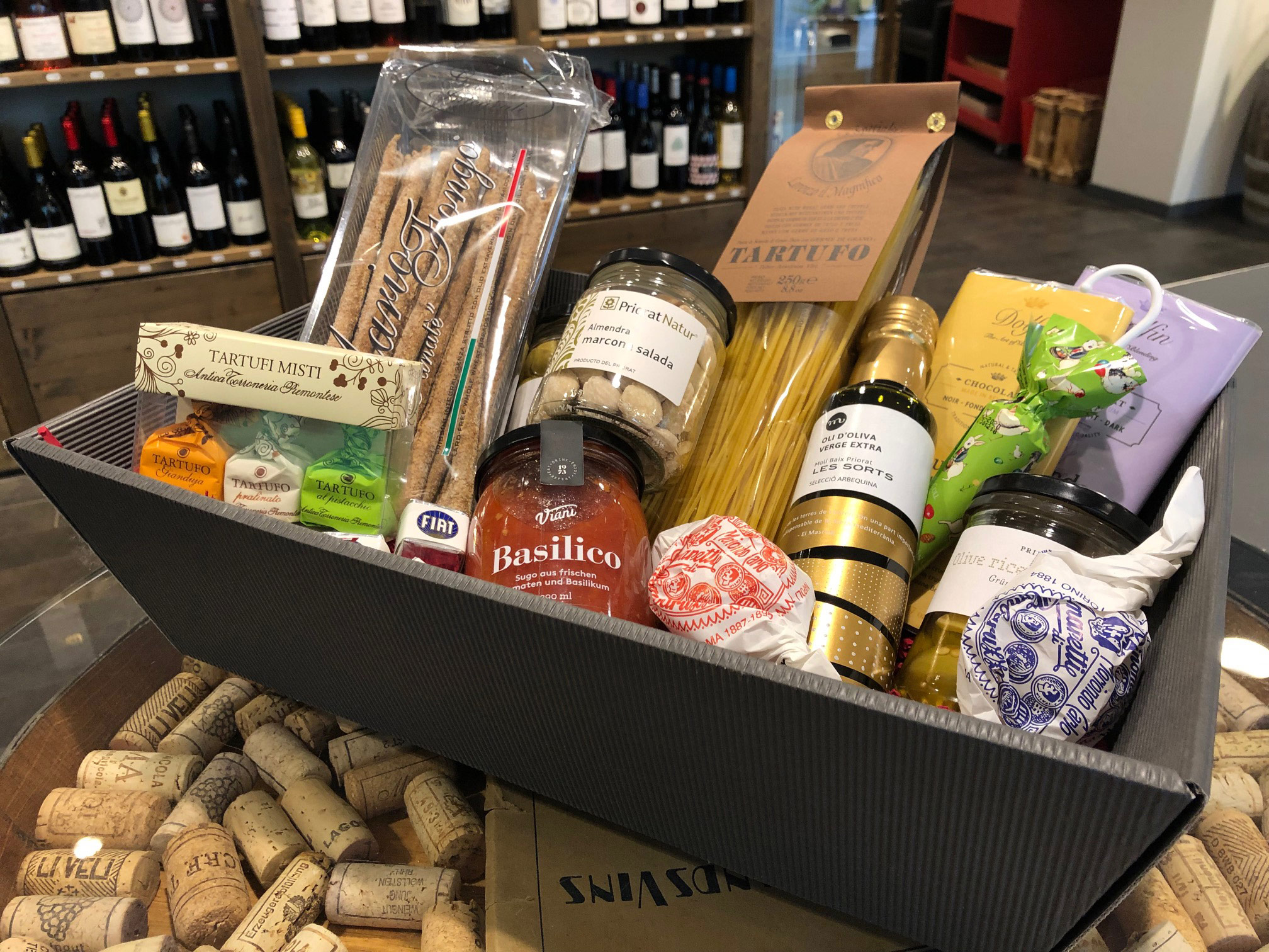 Sie können bei uns auch Wein mit Kulinarik verbinden und in unserem Feinkostsortiment den passenden Begleiter finden. Ob feine Trüffelpasta aus dem Piedmont, oder leckere, handgeschöpfte Schokolade aus Belgien. Wir haben ausgesuchte Spezialitäten für Sie bereit.